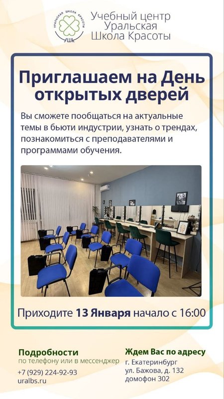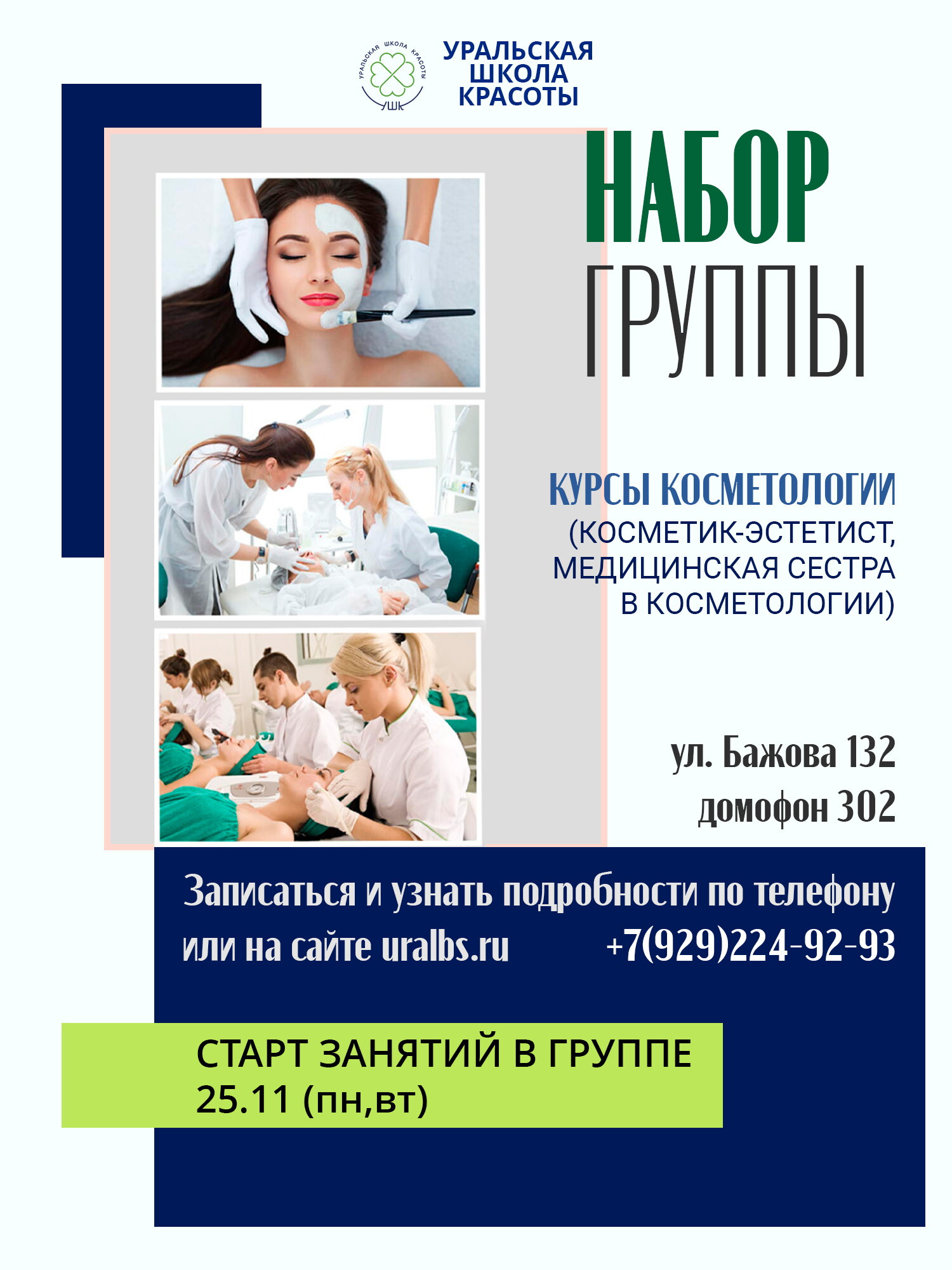 Два года назад искала, где обучиться на косметолога-эстетиста, и три раза мне попалась “Уральская Школа Красоты”. Решила, что это знак, и не ошиблась с выбором! Персонал очень вежливый, а все трое преподавательниц были грамотные и компетентные - это Ольга Валерьевна, Юлия Викторовна и Ирина Владимировна.
