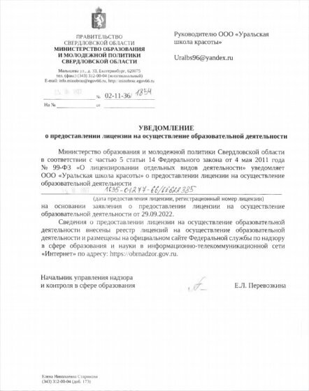 Я посещала Уральскую Школу Красоты год, и всё было просто замечательно! Хочу отметить, что косметика и обслуживание сотрудников отличные.