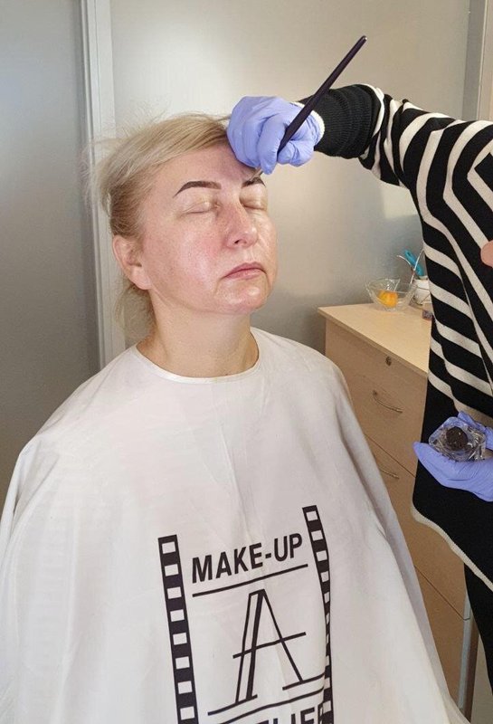 Преподаватель курса в школе аккуратно сделала мне коррекцию бровей с окрашиванием. Она подобрала подходящий для меня цвет, а в процессе работы вежливо разговаривала.